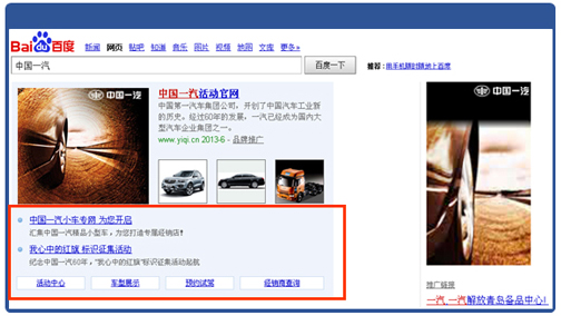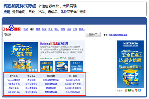 百度品牌專(zhuān)區(qū),位于百度搜索結(jié)果首位,以超大黃金首屏展示位置,以文字、圖片、視頻等多種廣告形式 全方位推廣展示企業(yè)品牌信息,將最為精華和直接的品牌信息展現(xiàn)在網(wǎng)民面前,眾多網(wǎng)民也得以更便捷的了 解品牌官網(wǎng)信息,更方便的獲取所需企業(yè)資訊,是提升企業(yè)品牌推廣效能的創(chuàng)新品牌推廣模式。